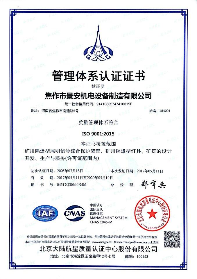 焦作市景安機(jī)電設(shè)備制造有限公司(原焦作市無線電一廠),是國家重點(diǎn)生產(chǎn)礦用防爆電子電器產(chǎn)品的專業(yè)企業(yè),全國煤炭行業(yè)機(jī)電產(chǎn)品定點(diǎn)生產(chǎn)單位,中國電器工業(yè)協(xié)會(huì)防爆電氣分會(huì)理事,市級礦用隔爆型工程技術(shù)中心,公司占地30000平方米,廠房10000平方米,ISO9001:2008質(zhì)量管理體系和A級計(jì)量認(rèn)證企業(yè)。