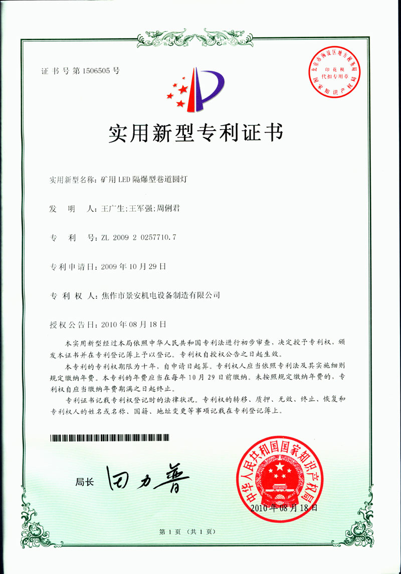 焦作景安公司始終堅(jiān)持“以科技為先導(dǎo),以市場為導(dǎo)向”的發(fā)展戰(zhàn)略,不斷進(jìn)行新產(chǎn)品的研制和開發(fā),在國家“六五”到“九五”期間,承擔(dān)和參與了國家多項(xiàng)科技攻關(guān)項(xiàng)目,產(chǎn)品的技術(shù)和質(zhì)量一直處于全國同行業(yè)領(lǐng)先位置。并被中國電器工業(yè)協(xié)會(huì)評定為“質(zhì)量可信產(chǎn)品”。特別是在礦用防爆燈領(lǐng)域,礦用隔爆型半導(dǎo)體(LED)照明燈具,2008年列入國家火炬計(jì)劃,獲2009年河南省工業(yè)和信息化廳的科技成果二等獎(jiǎng),并擁有多項(xiàng)國家專利。 |